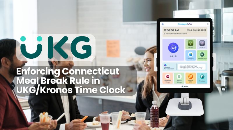 Discover how CloudApper hrPad, a tablet/iPad-based time clock for UKG/Kronos, helps you enforce the Connecticut Meal Break Rule, avoid penalties,...