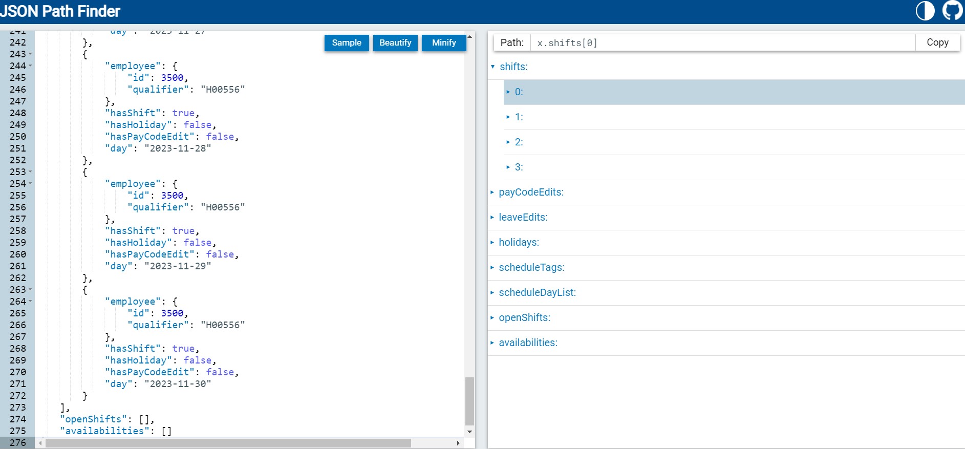 To get the data in a more organized way, we can you json path finder to organize the schedule data-
