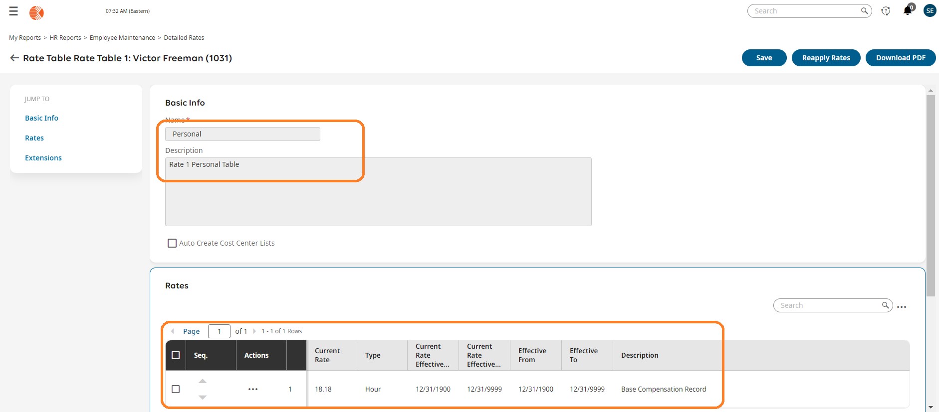 You will get the details of the Employee personal Rate table.