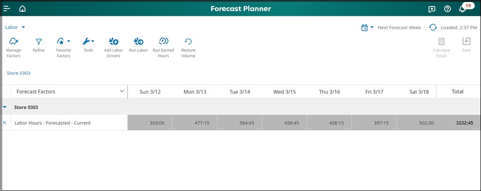 - Perform common actions on daily forecast data, such as running the labor forecast, managing forecast factors, or restoring volume.