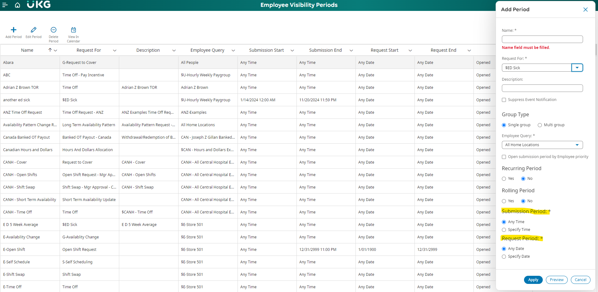 - Before finalizing, use the “Preview” option to ensure the configured request period aligns with your expectations.