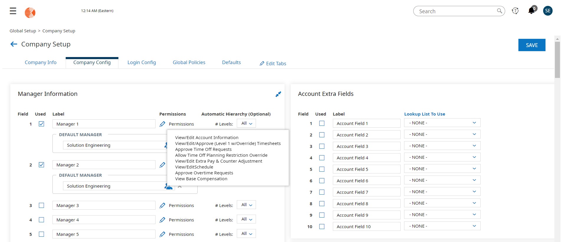 - Go to: Company Settings > Global Setup > Company Setup > Company Config tab.