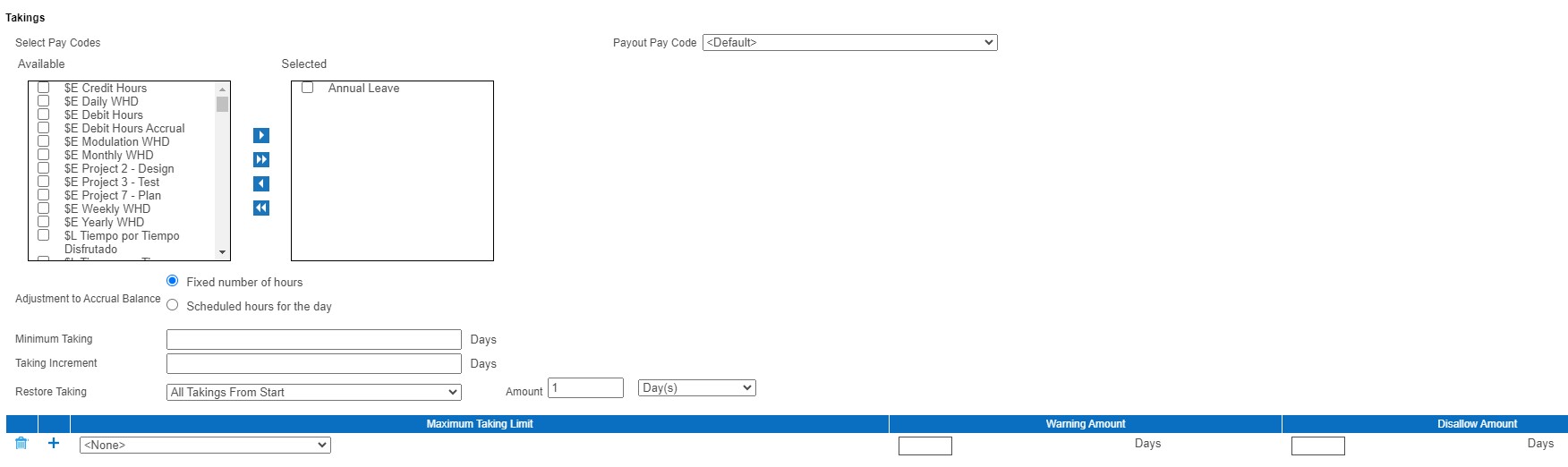 - Future Overdrafts: Set a warning amount and/or disallow amount. Note: Future Overdrafts apply to scheduled time off, scheduled sick leave, or vacation.