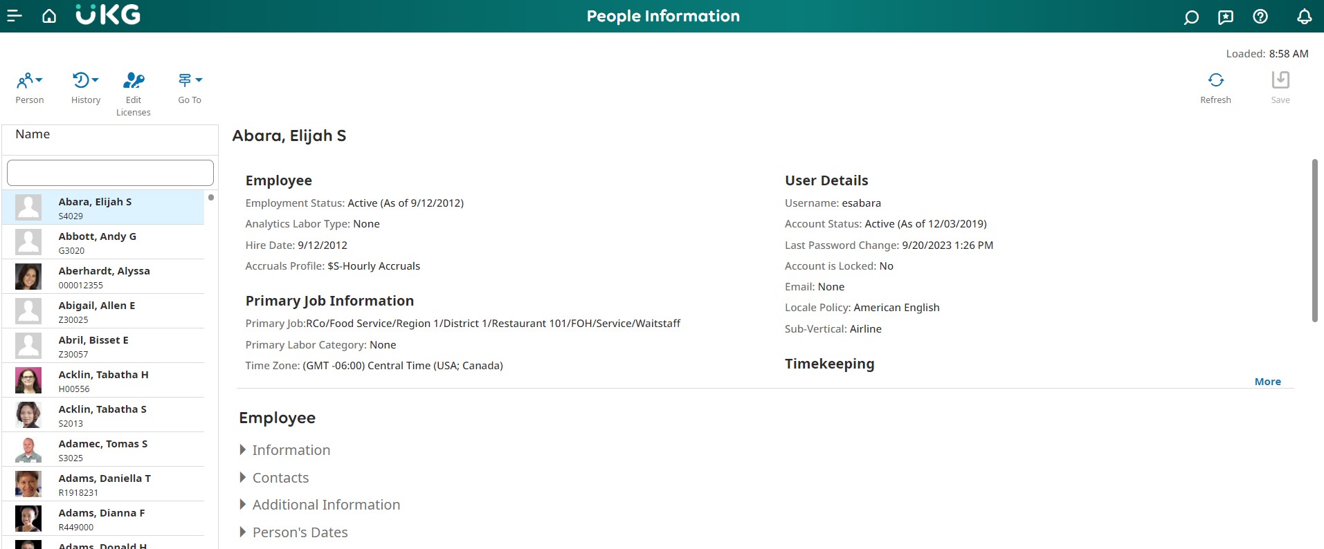 Log in to the UKG Dimension as an Administrator. Go to > Maintenance > People Information