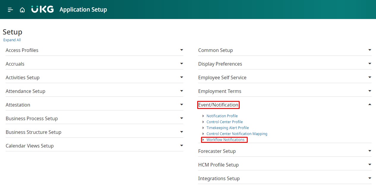- Navigate to Application Setup > Event/Notification > Workflow Notifications.
