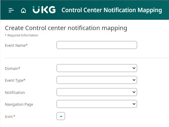 - Go to Application Setup > Event/Notification > Control Center Notification Mapping.