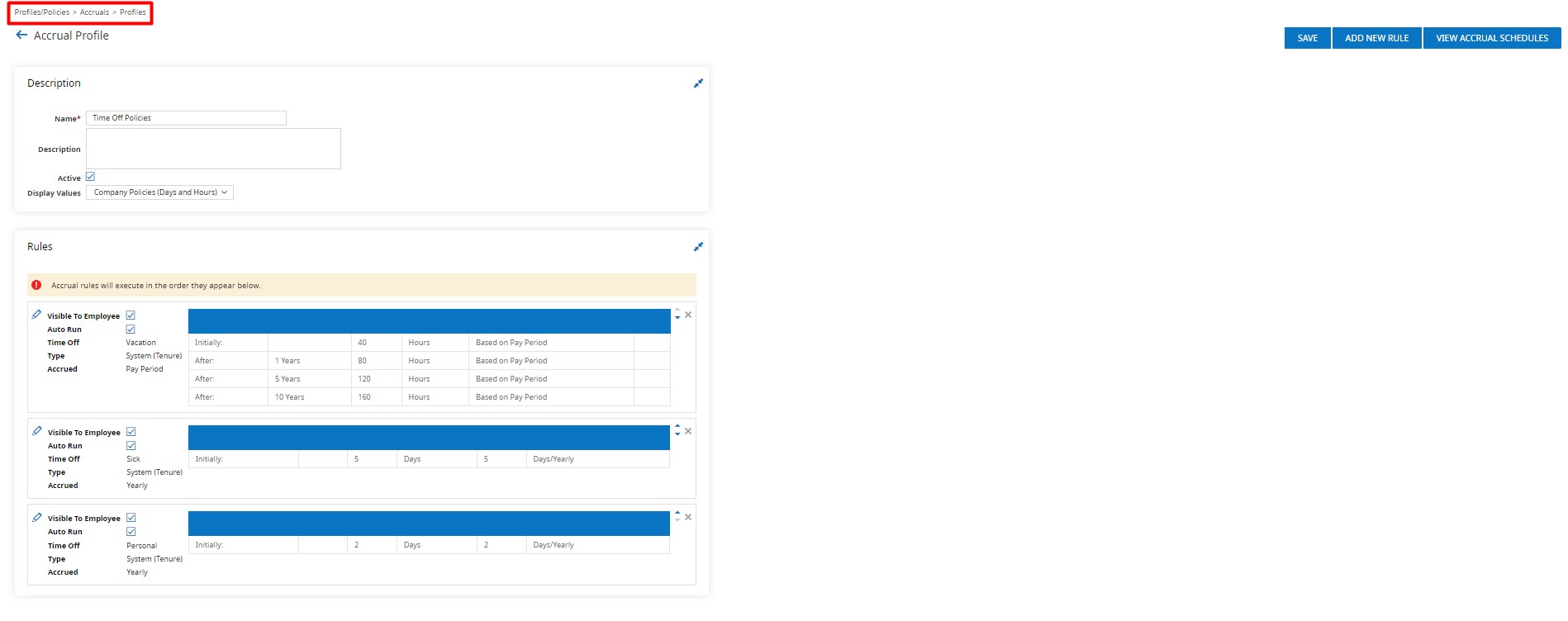 Consider a scenario in which the accrual policy not only facilitates fundamental operations such as employee onboarding, time-off requests, and leave administration but also ensures that employees are effectively scheduled.
