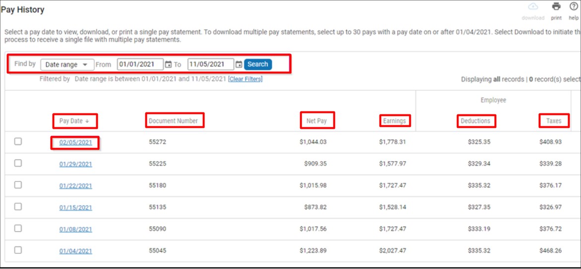 Once on the Pay History page, follow these steps: